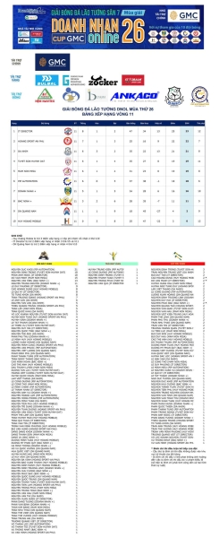 LÃO TƯỚNG MÙA 26 - XẾP HẠNG VÒNG 11