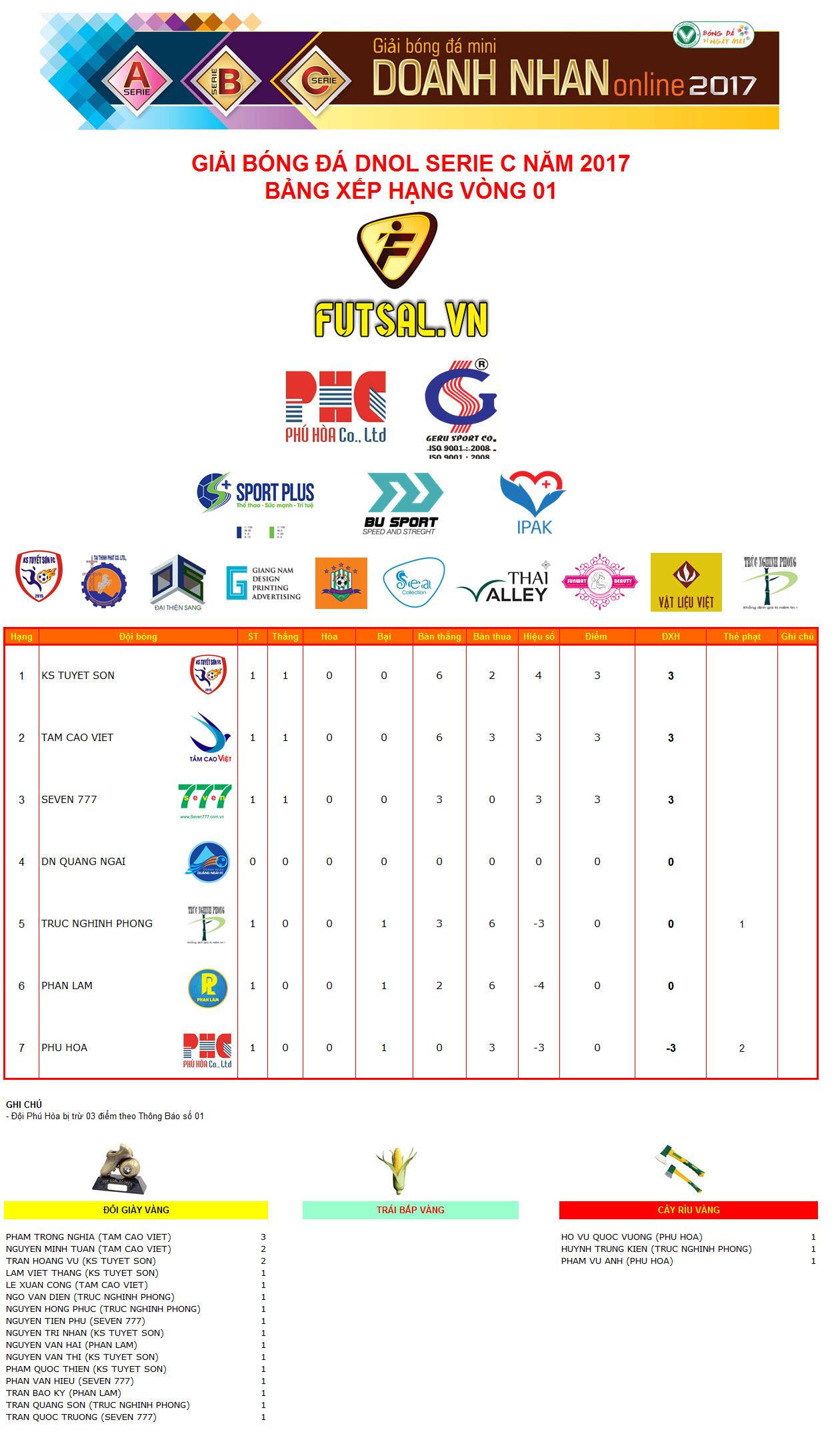 KẾT QUẢ VÒNG 1 SERIE C MÙA GIẢI 2017 (07/03/2017, 08:15 PM)