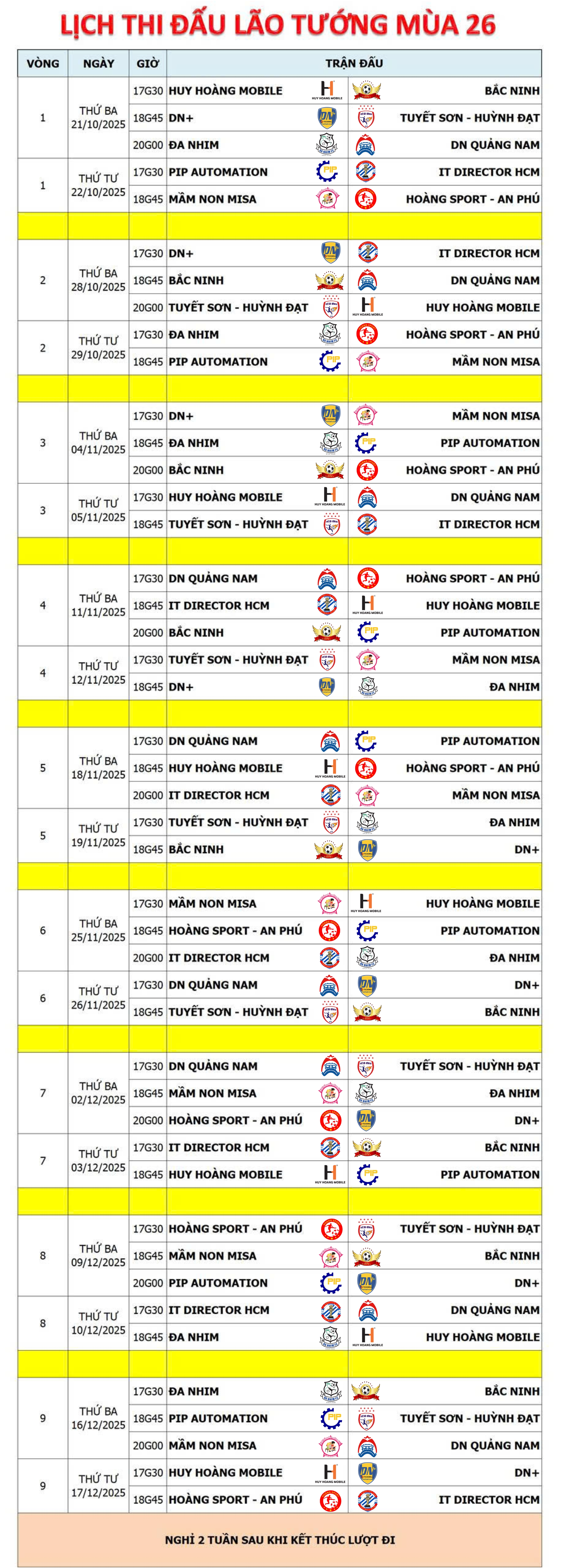 LỊCH THI ĐẤU GIẢI BÓNG ĐÁ LÃO TƯỚNG S11 MÙA 01 NĂM 2023 (12/08/2023, 06:09 PM)