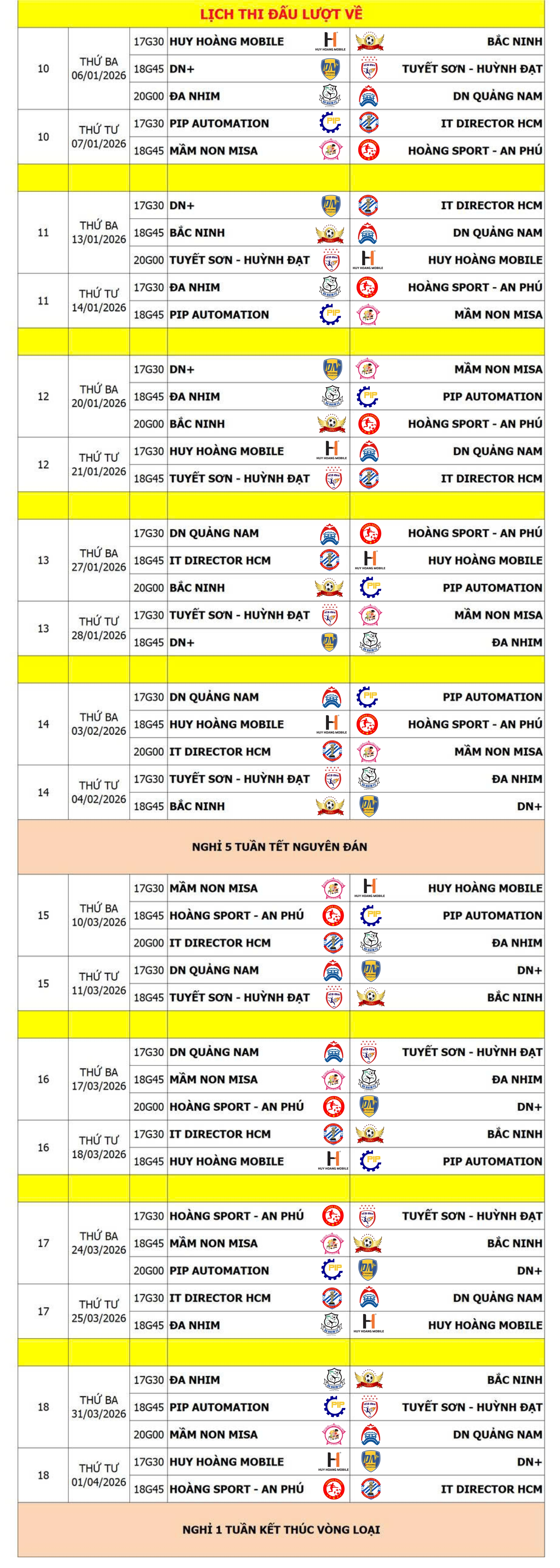 LỊCH THI ĐẤU GIẢI BÓNG ĐÁ S11 DNOL MÙA 2 NĂM 2024 (04/12/2024, 10:15 PM)