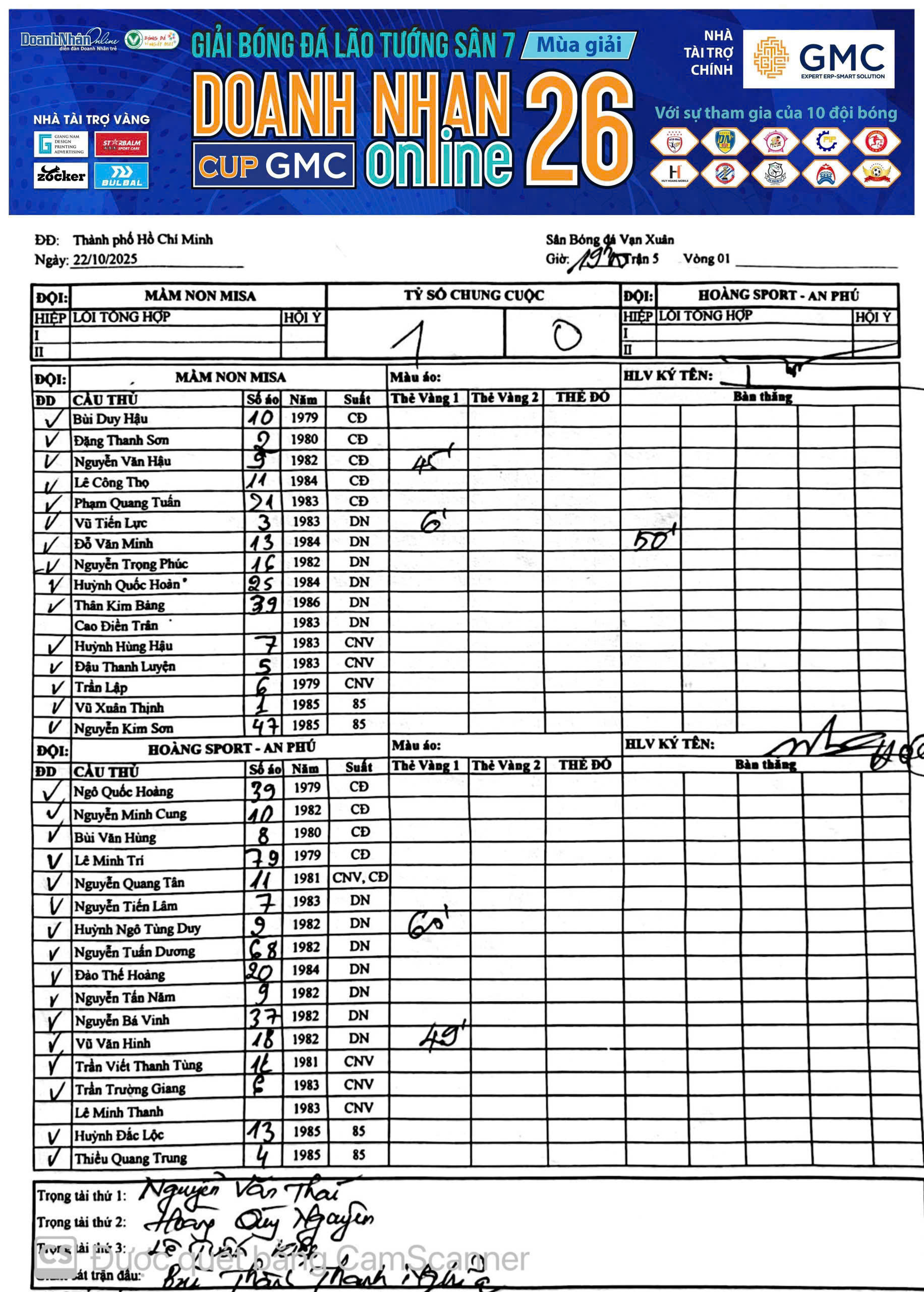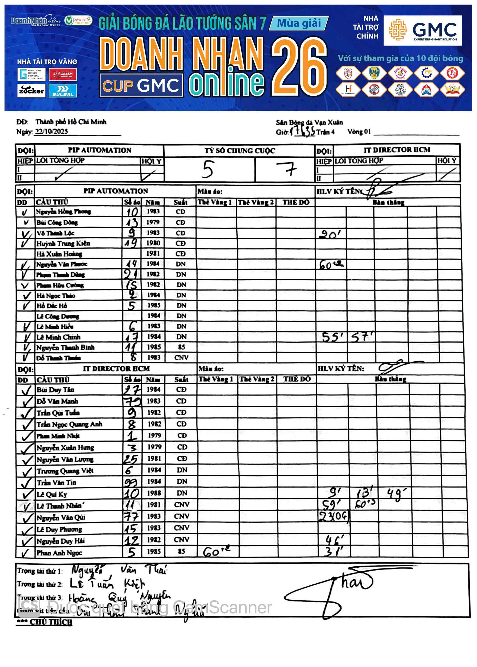 Kết quả Vòng 10 Giải Sân 7 Lão tướng DNOL Cup TICKMILL Mùa 25 năm 2025 (03/06/2025, 10:51 PM)