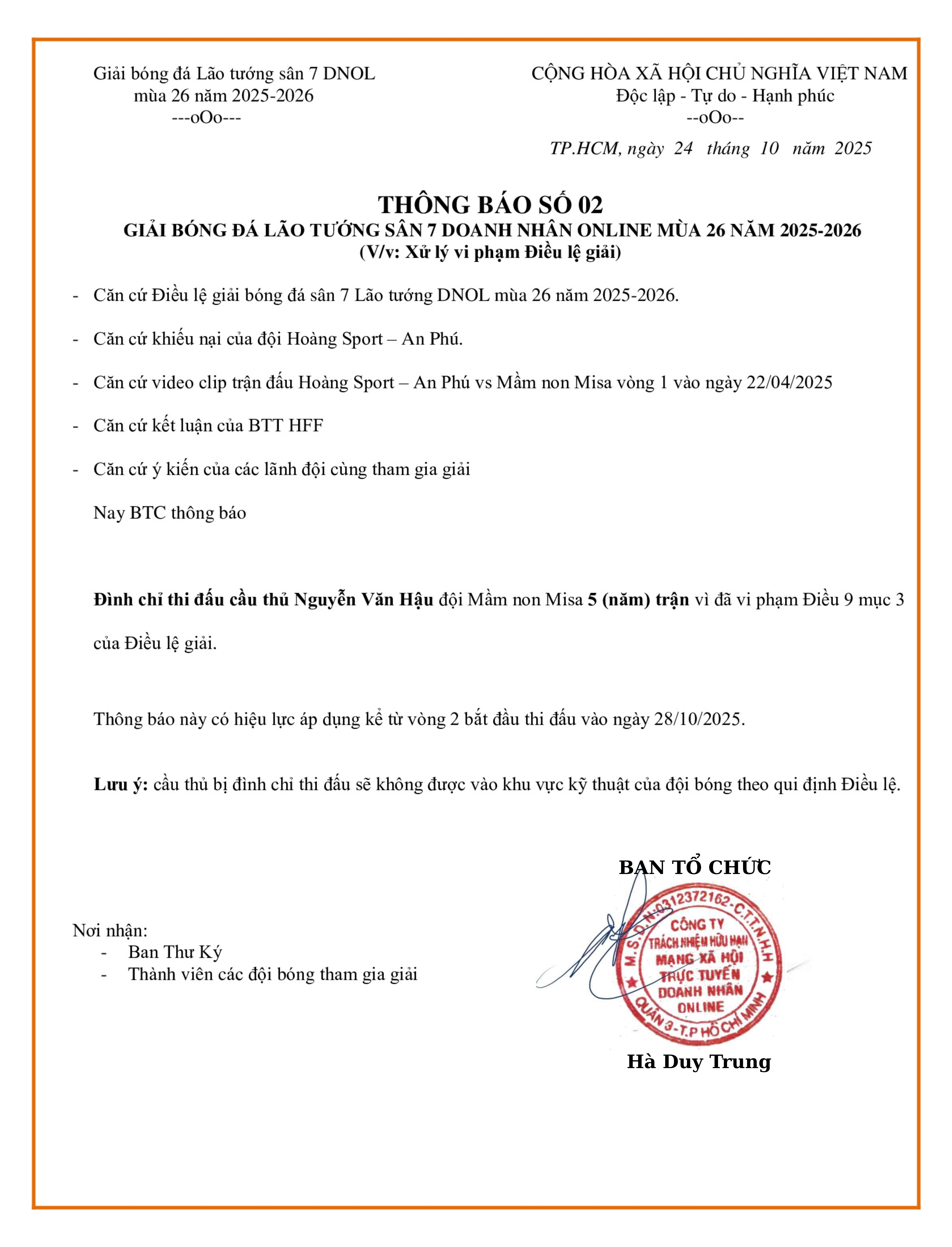 THÔNG BÁO SỐ 01 GIẢI BÓNG ĐÁ SÂN 11 DOANH NHÂN ONLINE MÙA 2 NĂM 2024 (23/12/2024, 02:37 PM)