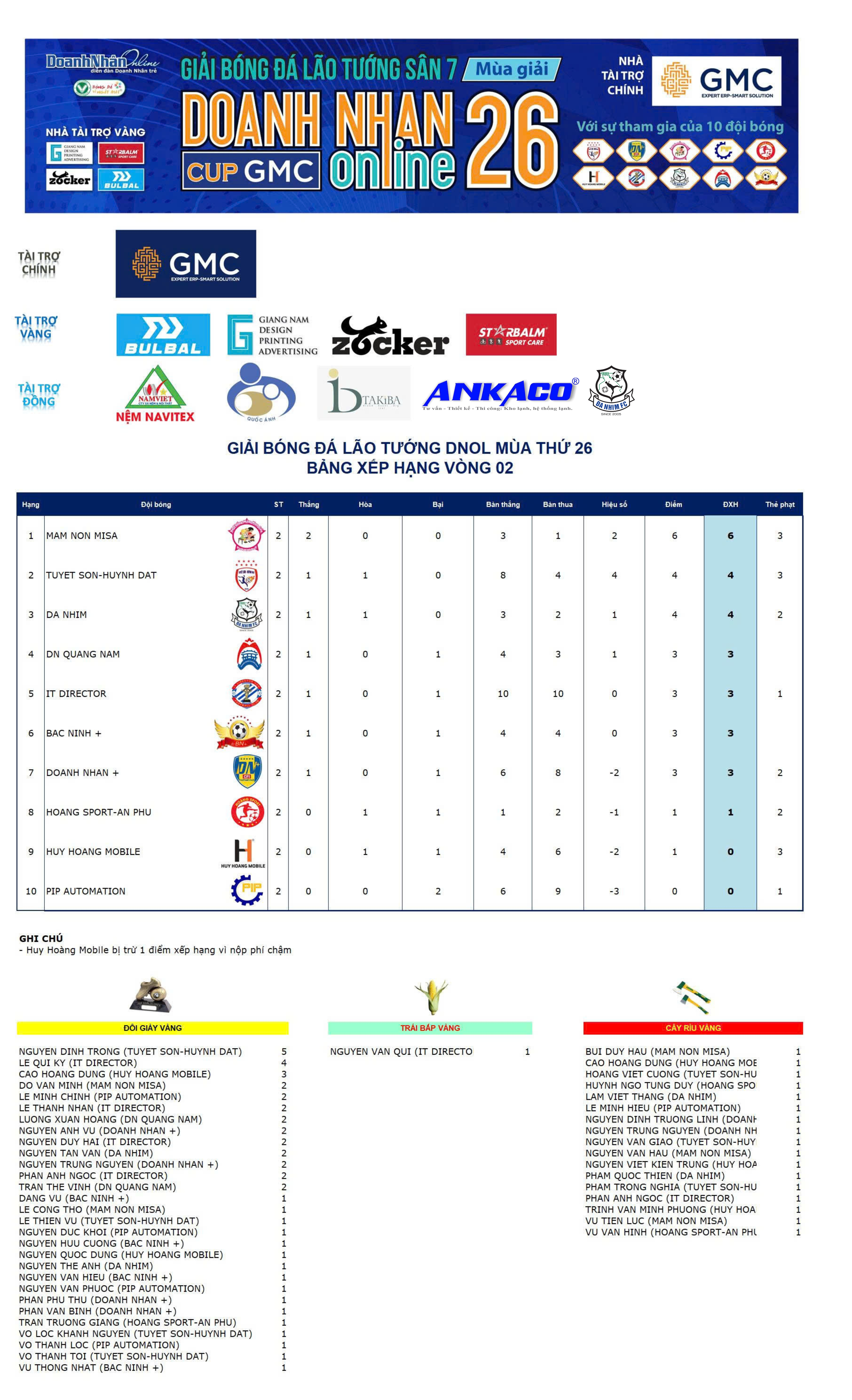 LÃO TƯỚNG MÙA 25 - XẾP HẠNG CHUNG CUỘC (28/07/2025, 12:37 PM)