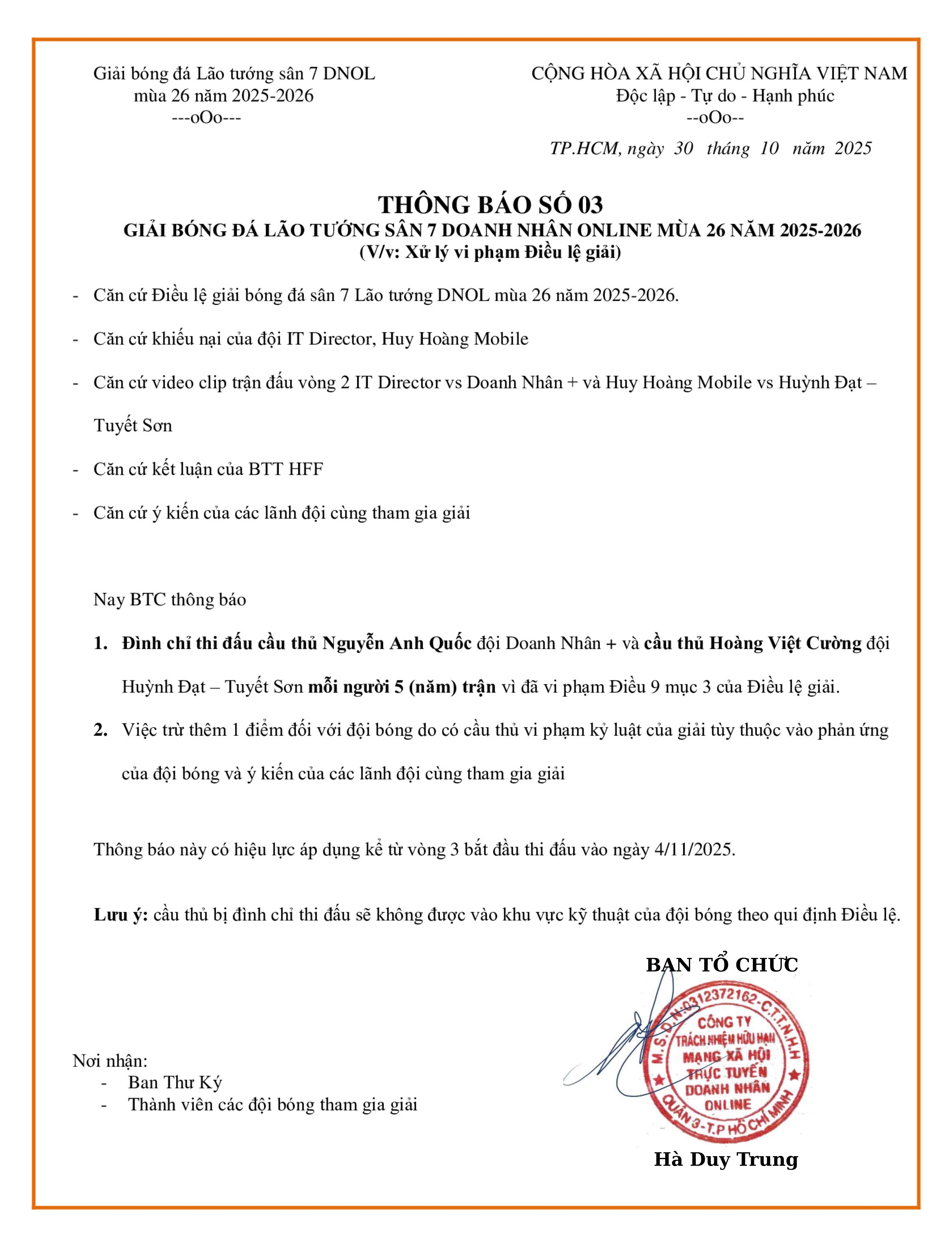 THÔNG BÁO SỐ 02 GIẢI BÓNG ĐÁ S7 LÃO TƯỚNG DOANH NHÂN ONLINE CUP GMC MÙA 26 NĂM 2025-2026 (24/10/2025, 06:28 PM)