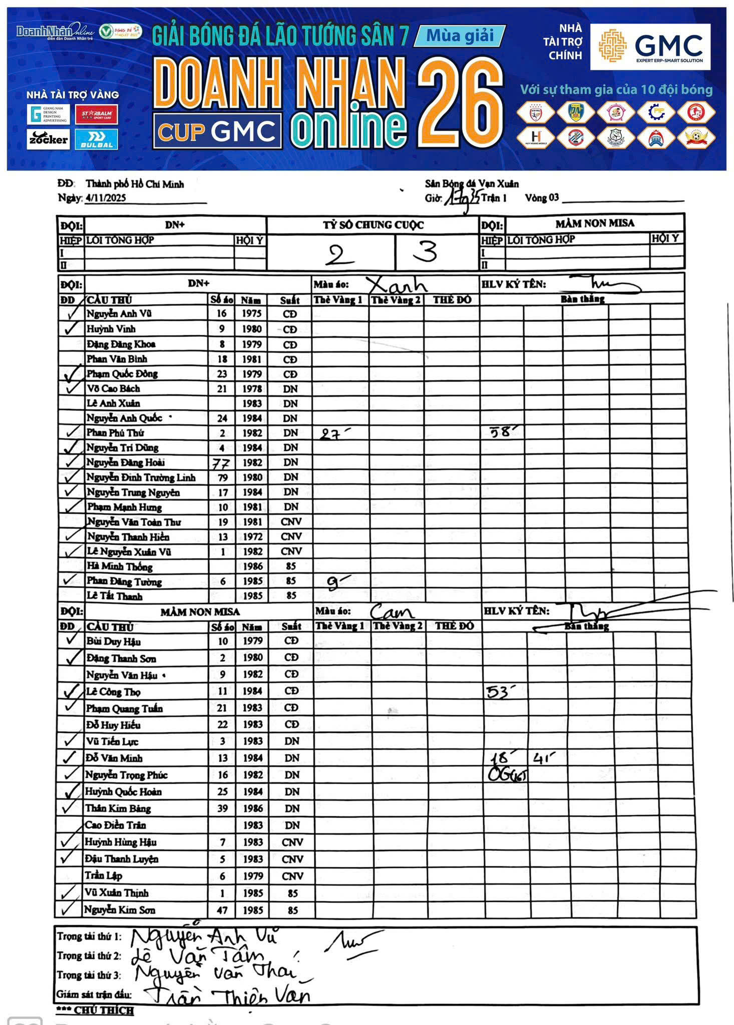 Kết quả Vòng 2 Giải Sân 7 Lão tướng DNOL Cup GMC Mùa 26 năm 2025-2026 (30/10/2025, 08:14 AM)
