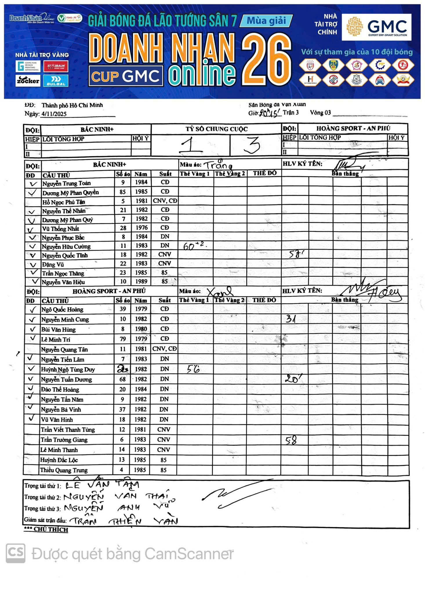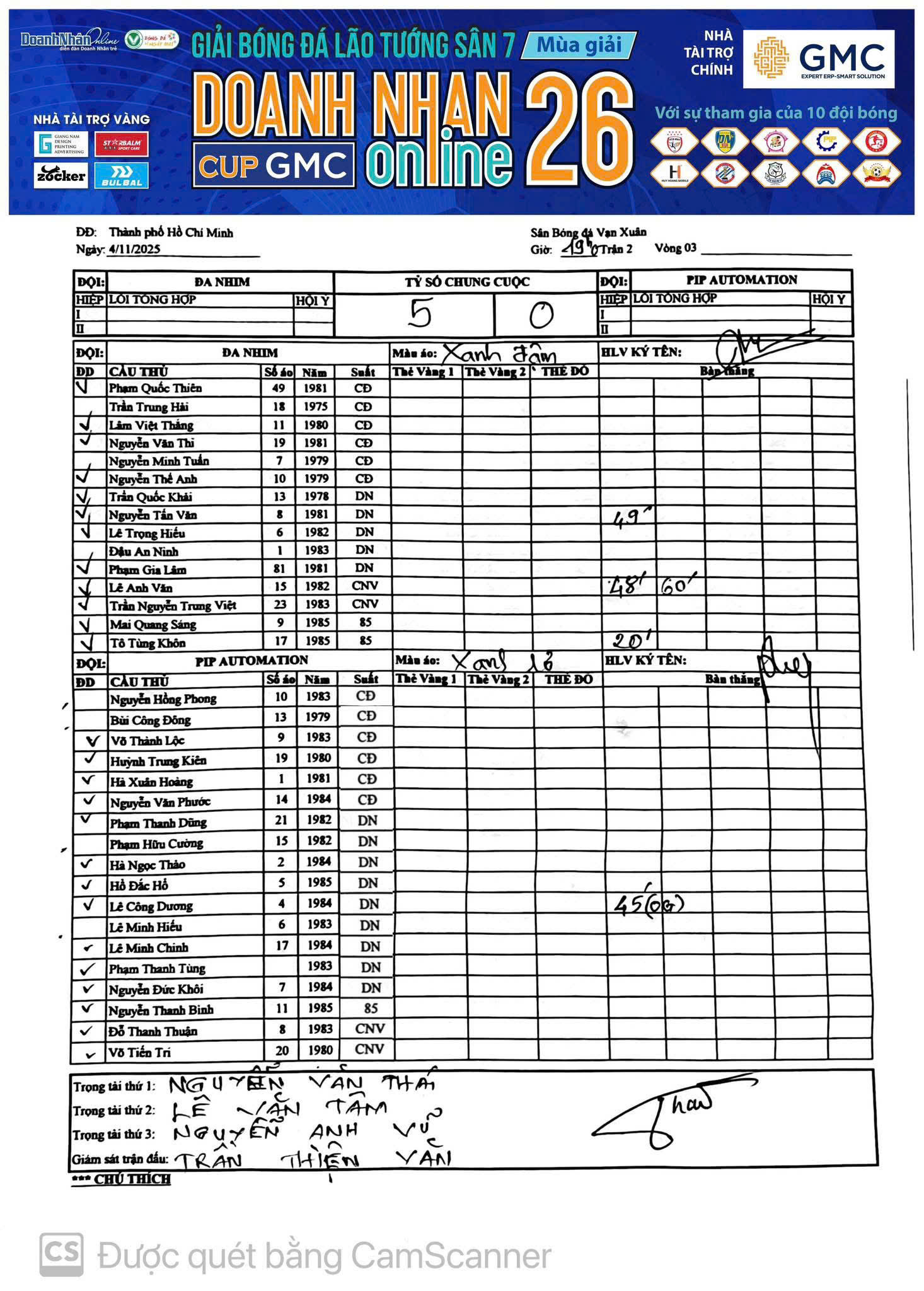 Kết quả Vòng 4 Giải Sân 7 Lão tướng DNOL Cup TICKMILL Mùa 25 năm 2025 (08/04/2025, 09:39 PM)