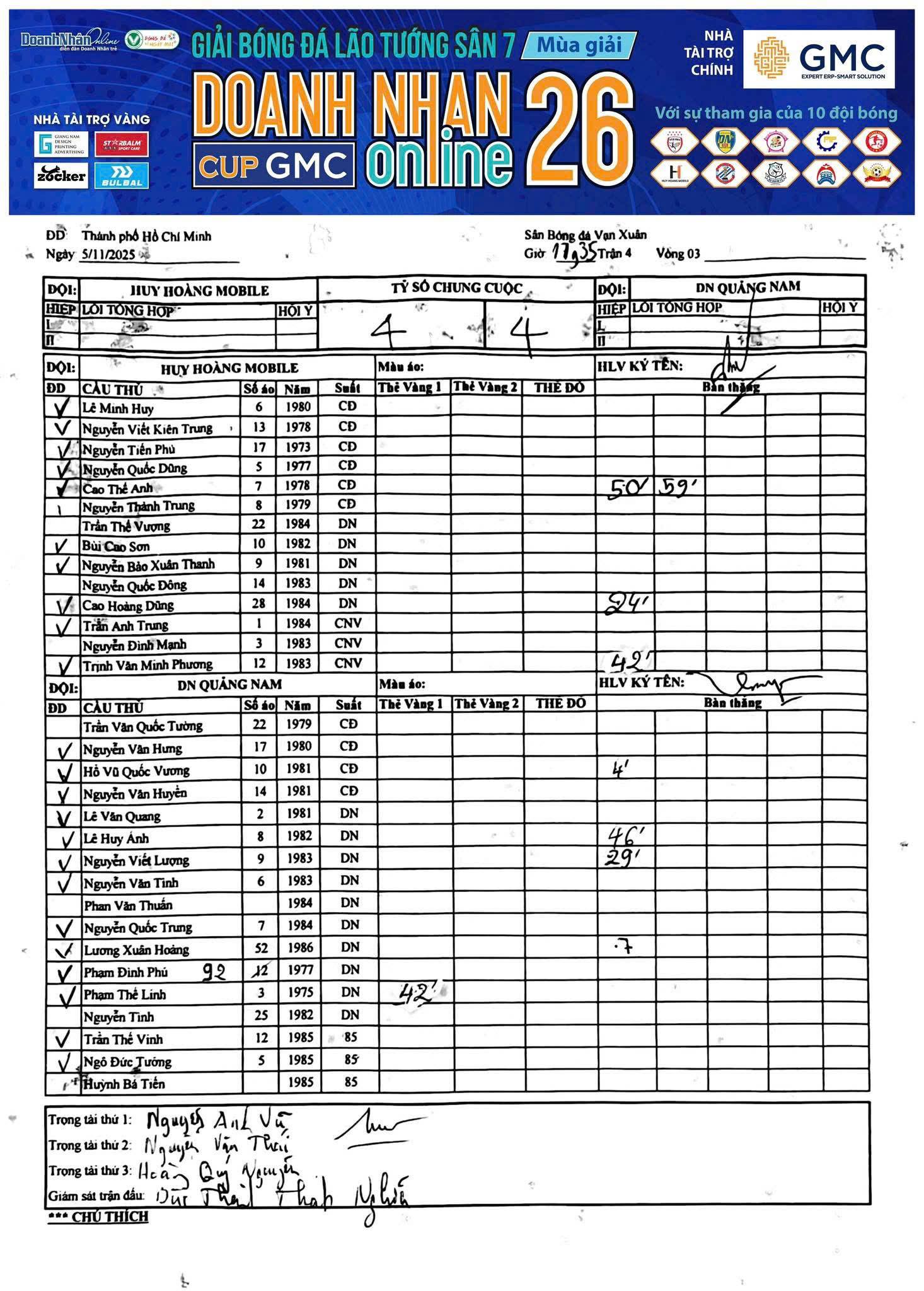 Kết quả Vòng 1 Giải Sân 7 Lão tướng DNOL Cup GMC Mùa 26 năm 2025-2026 (21/10/2025, 11:34 PM)