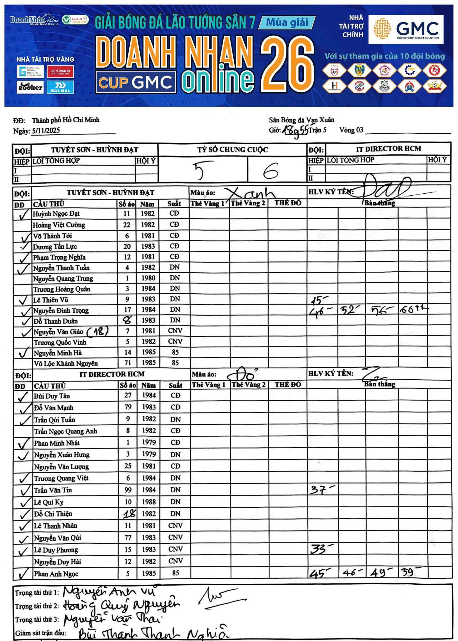 Kết quả Vòng 5 Giải Sân 7 Lão tướng DNOL Cup TICKMILL Mùa 25 năm 2025 (15/04/2025, 09:41 PM)