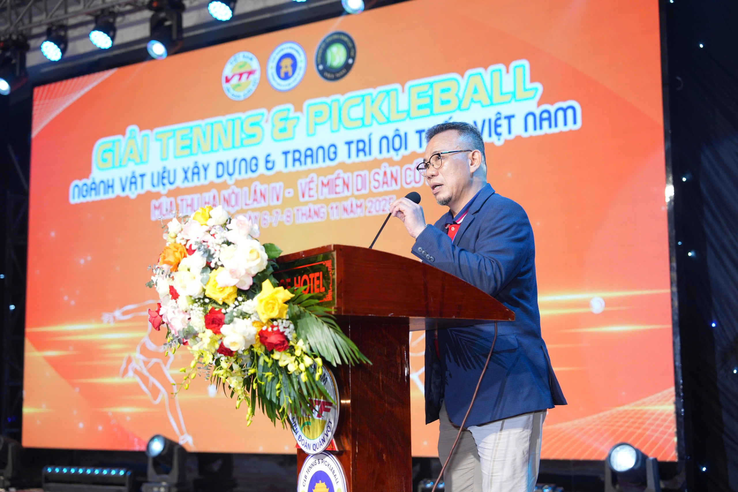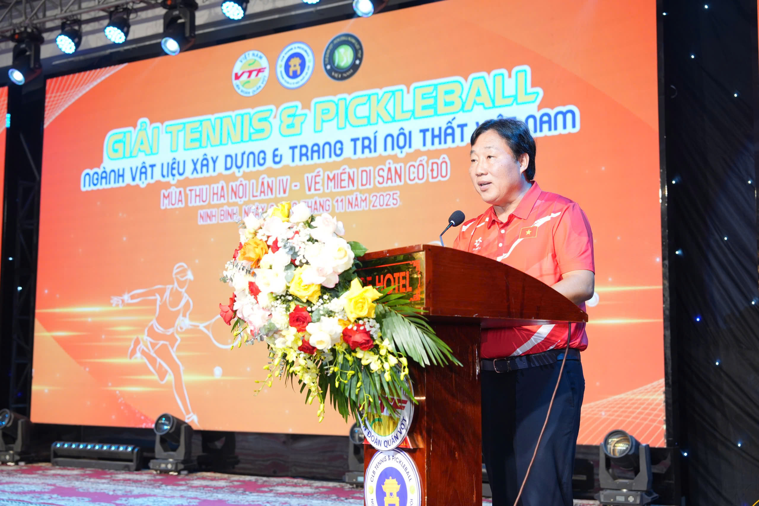 Phát biểu tại sự kiện, ông Nguyễn Hồng Sơn – Phó Chủ tịch kiêm Tổng Thư ký Liên đoàn Quần vợt Việt Nam bày tỏ xúc động: "Chính các anh chị em trong ngành VLXD – TTNT đã mang đến cho Ninh Bình một ngày hội thật sự ý nghĩa, với hơn 20 gian hàng trưng bày, cùng hoạt động vận động từ thiện hơn 100 triệu đồng,… Tôi vô cùng ngưỡng mộ và đánh giá cao sự sáng tạo, nhiệt huyết của Ban Tổ chức cũng như toàn thể thành viên tham gia. Xin gửi lời cảm ơn chân thành và chúc cho giải đấu diễn ra thành công rực rỡ, mang lại những ngày thật vui và đáng nhớ!” Những tràng pháo tay vang lên không dứt như lời khẳng định cho tinh thần gắn kết và lan tỏa của cộng đồng thể thao ngành VLXD & TTNT.