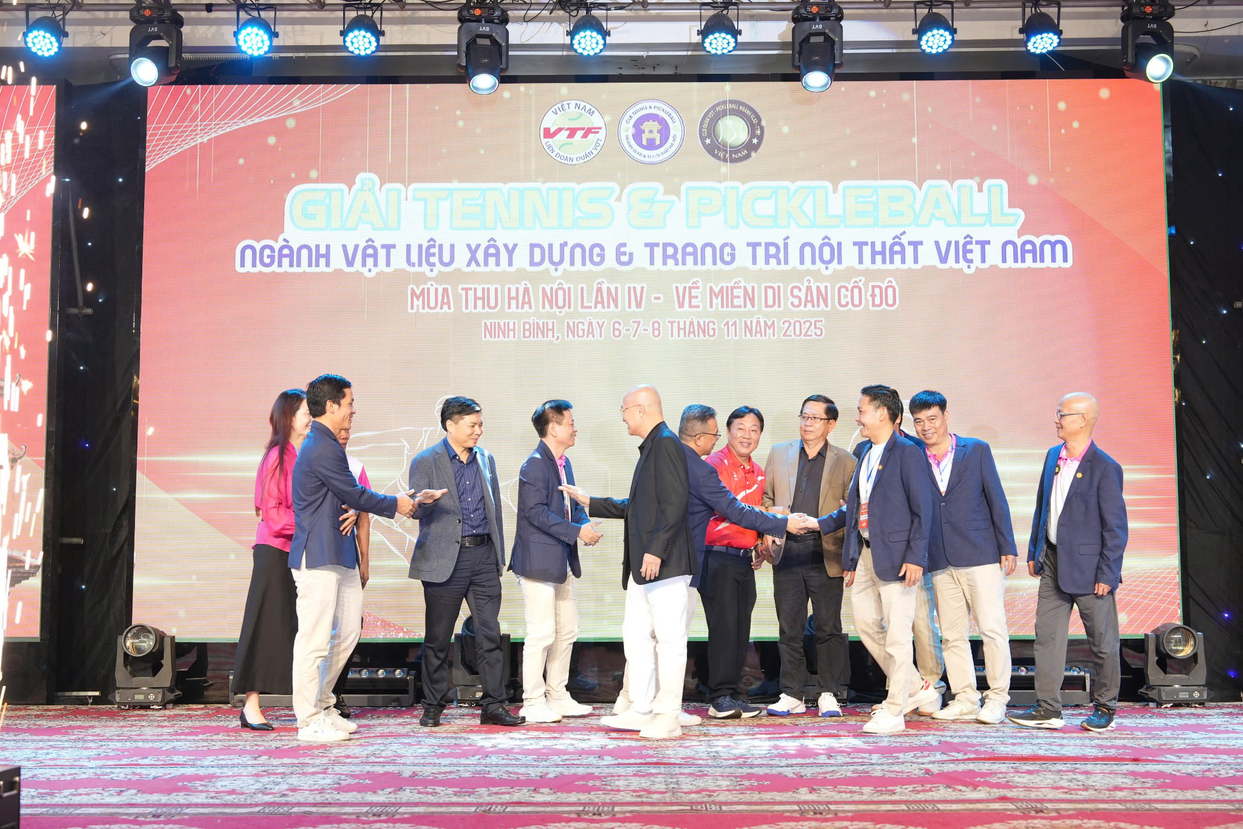 Tối ngày 7/11/2025, tại sảnh Hoàng Sơn White Palace, Ninh Bình, Lễ Khai mạc và Vinh danh Giải Tennis & Pickleball Mùa Thu Hà Nội – Lần thứ IV với chủ đề "Về miền di sản cố đô” đã diễn ra trong không khí trang trọng, ấm áp và tràn đầy cảm xúc. Ngay từ sớm, hàng trăm đại biểu, khách mời, nhà tài trợ cùng gần 500 vận động viên từ khắp các tỉnh, thành đã hội tụ về không gian sang trọng của Hoàng Sơn White Palace để cùng hòa mình vào ngày hội thể thao lớn nhất trong năm của ngành VLXD & TTNT Việt Nam.