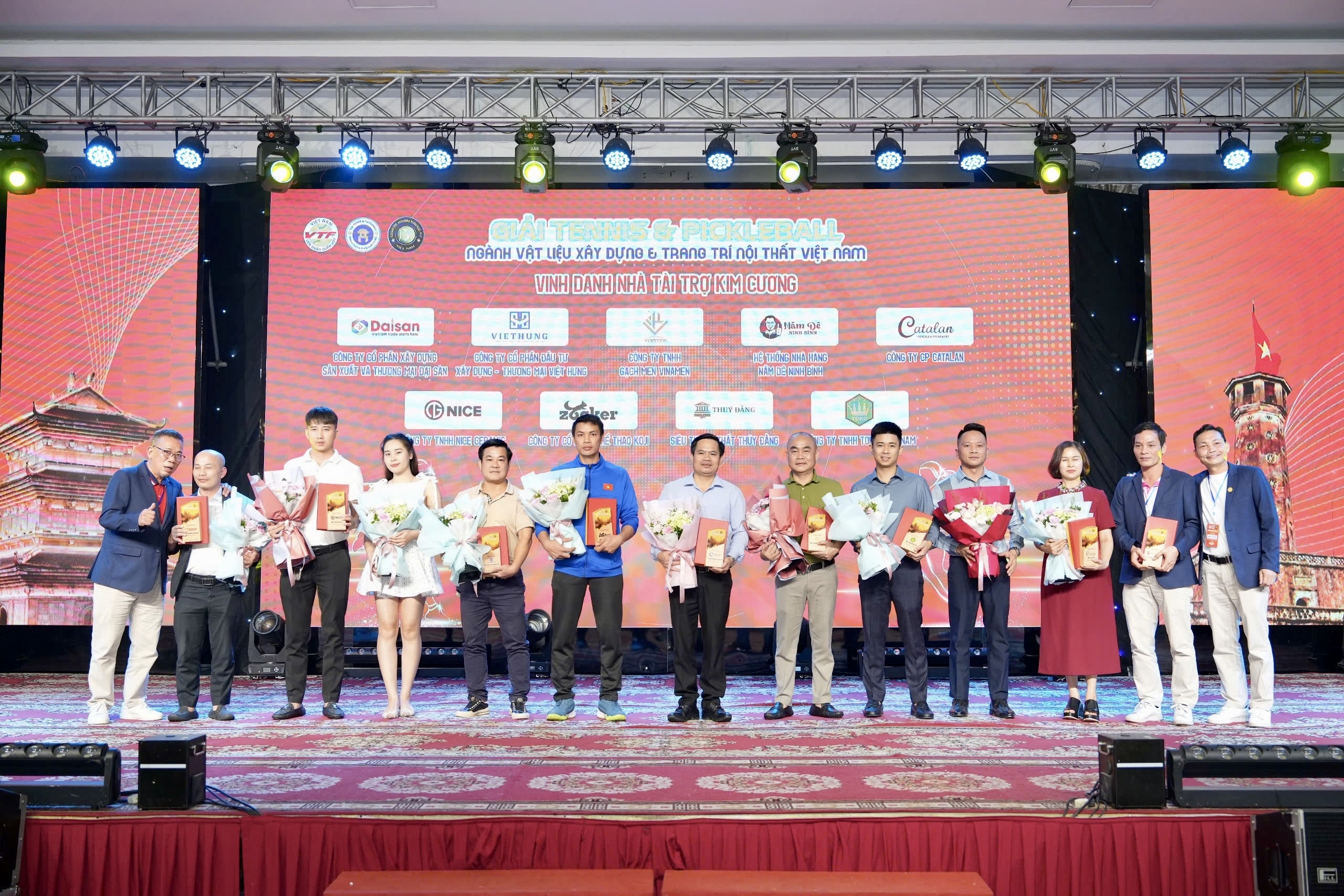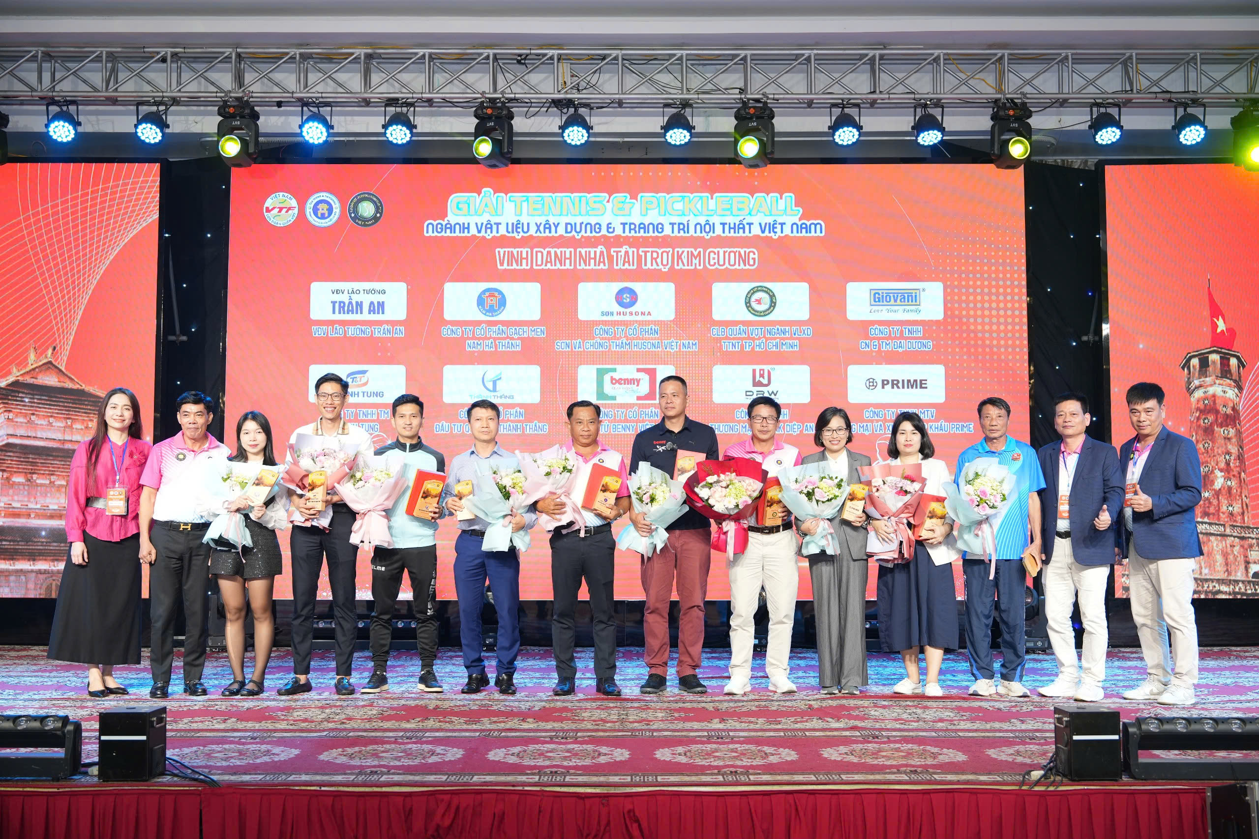 Trong phần vinh danh, Ban Tổ chức trang trọng trao hoa và kỷ niệm chương tri ân đến các nhà tài trợ danh xưng, Platinum, Kim cương, Vàng, Bạc, Đồng và các đơn vị đồng hành – những người đã góp phần làm nên thành công của giải đấu năm nay. Các thương hiệu tiêu biểu như LIXIL Việt Nam, Minh Anh, TM Hữu Nghị, Saint-Gobain Việt Nam, Viglacera, NPG Hưng Yên cùng nhiều doanh nghiệp khác được xướng tên trong ánh sáng lung linh của sân khấu, như một lời tri ân sâu sắc gửi đến những tấm lòng đồng hành cùng phong trào thể thao.