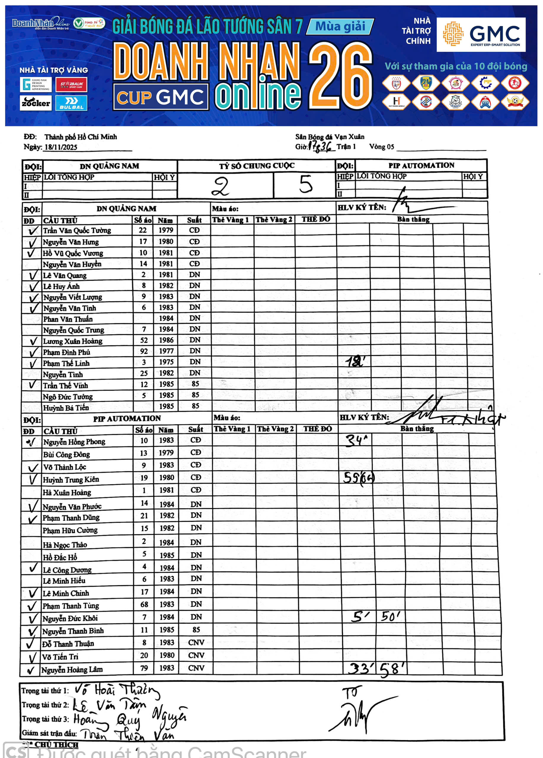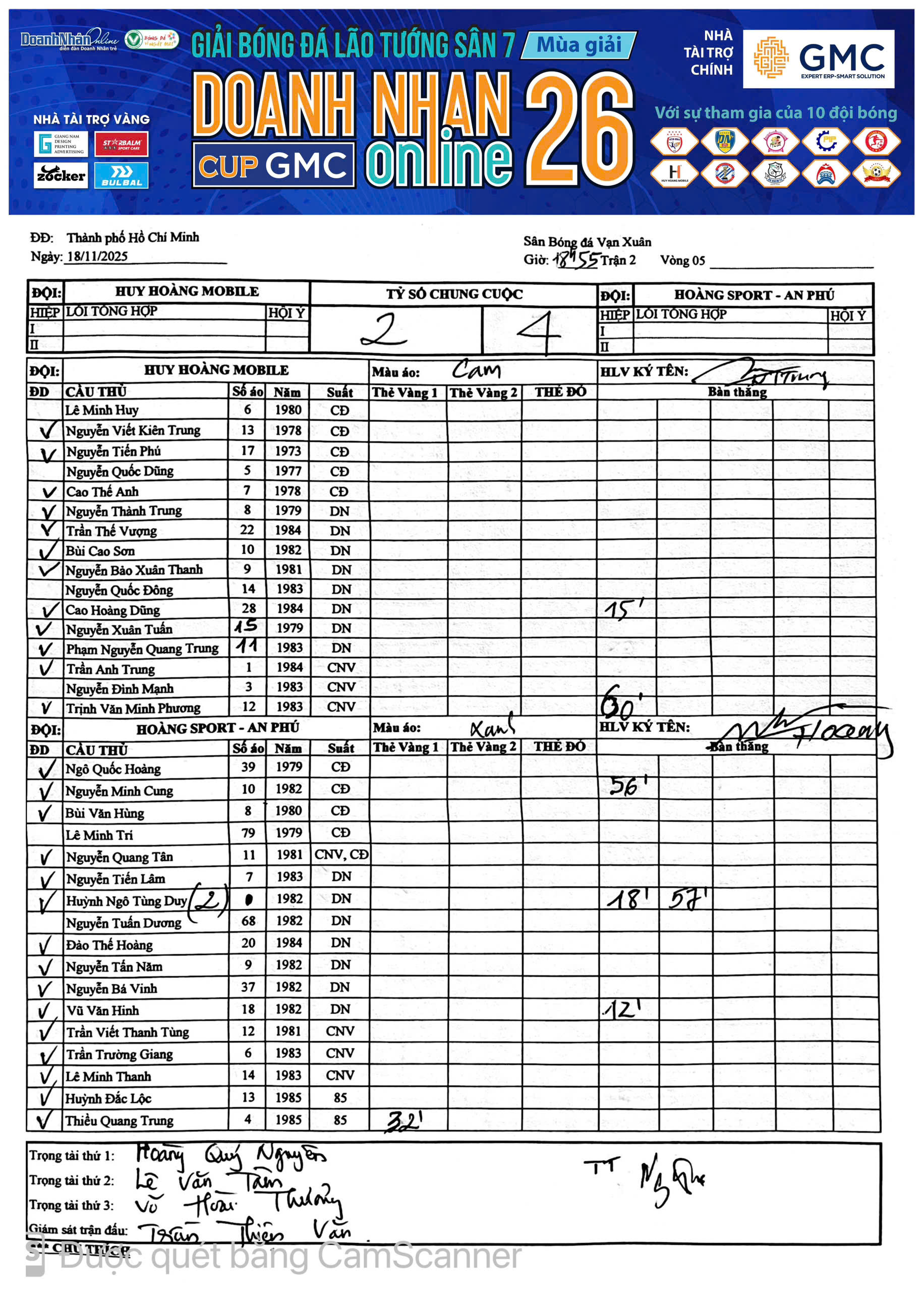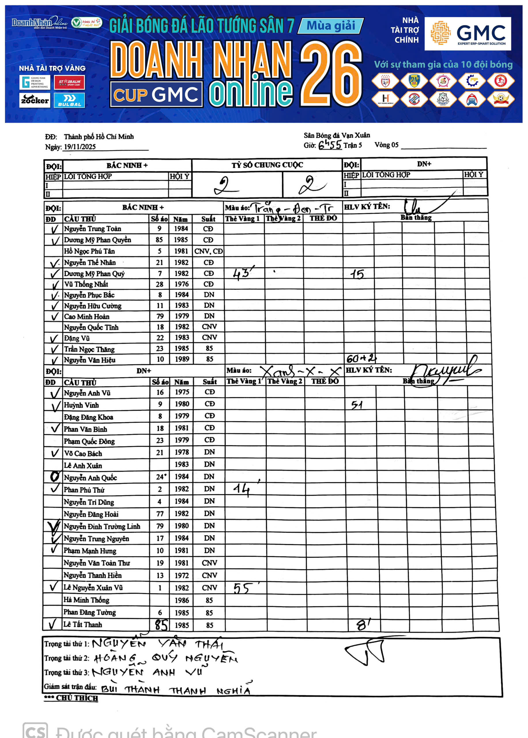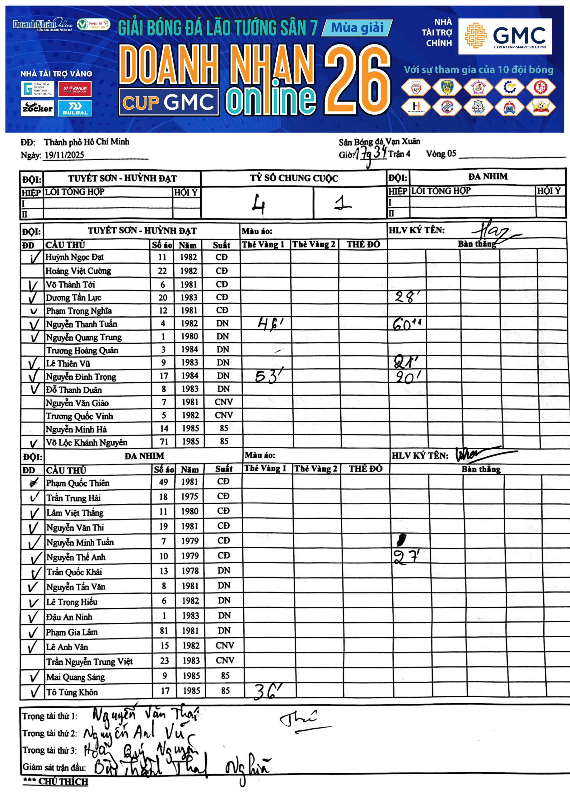 Kết quả Vòng 3 Giải Sân 7 Lão tướng DNOL Cup GMC Mùa 26 năm 2025-2026 (06/11/2025, 08:16 AM)