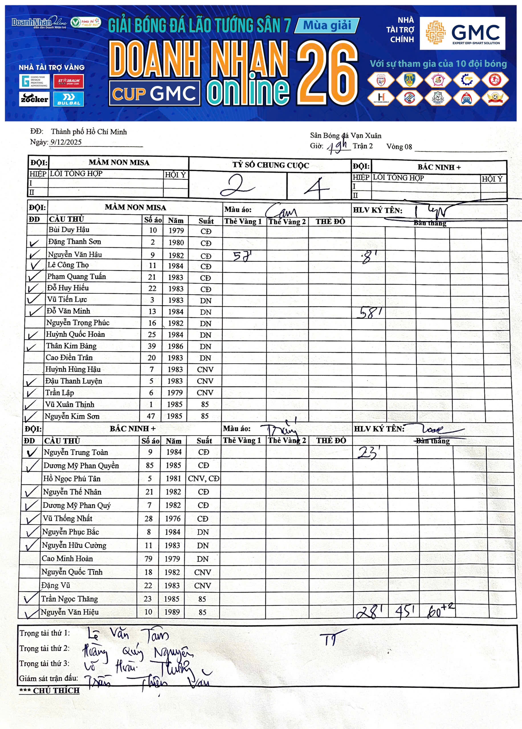 Kết quả Vòng 2 Giải Sân 7 Lão tướng DNOL Cup GMC Mùa 26 năm 2025-2026 (30/10/2025, 08:14 AM)