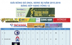 Ban Thư ký cập nhật kết quả 4 trận đấu Vòng 12 Serie B2 Giải bóng đá Doanh nhân Online năm 2015 - 2016